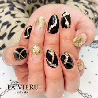 ブラック 黒 ゴールドラインのネイルデザイン ネイルブック